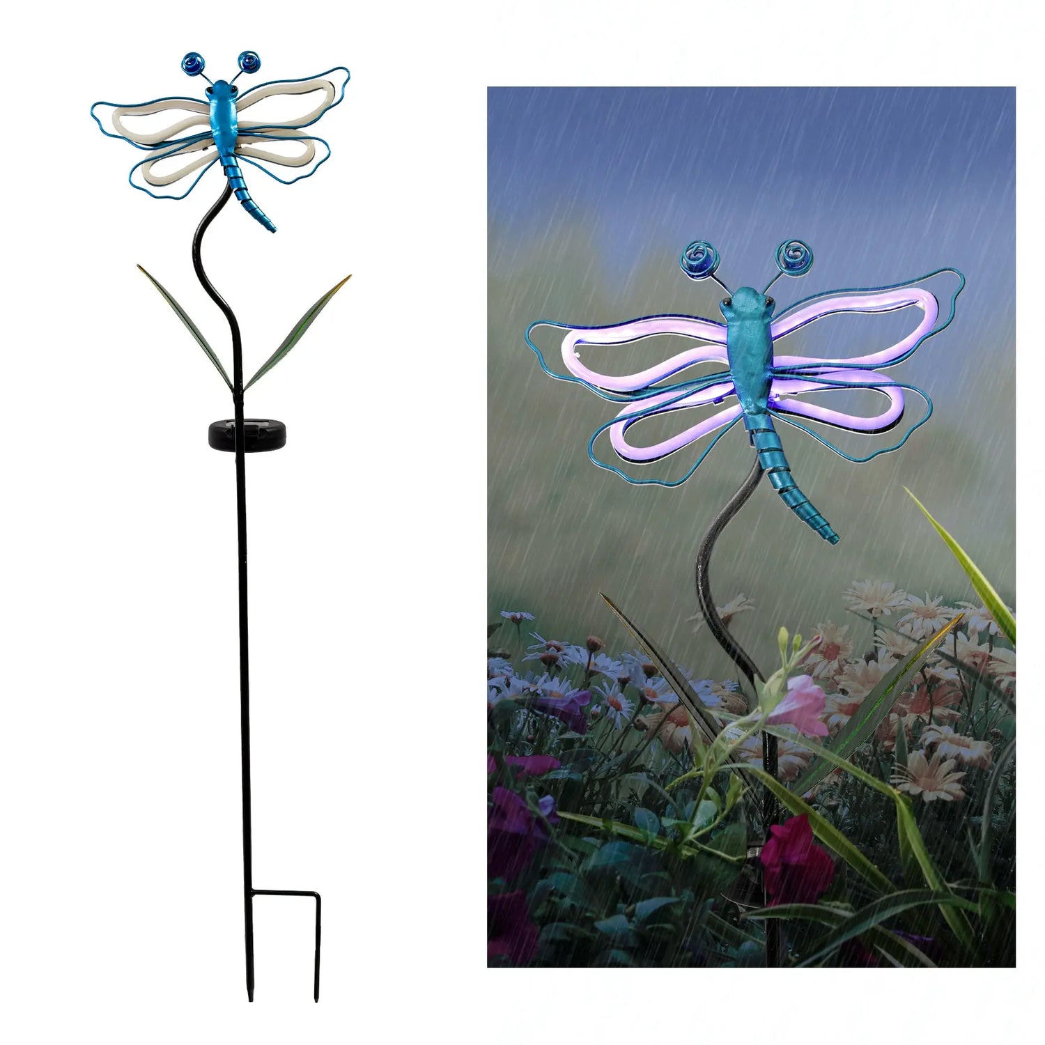 Transform your outdoor space into a whimsical wonderland with the Butterfly & Dragonfly Garden Stakes. Adorned with a painted finish, these charming stakes can be placed anywhere that basks in direct sunlight. As the solar panel diligently collects sunlight during the day, the stakes automatically come to life at dusk, offering up to 8 hours of enchanting nighttime illumination.