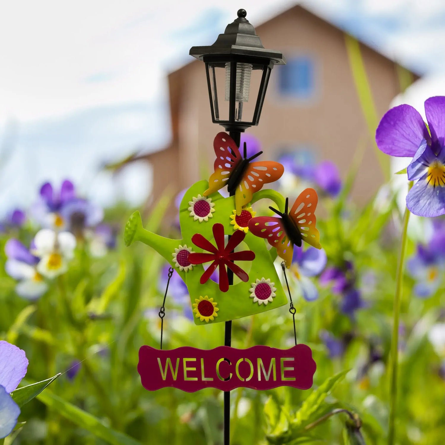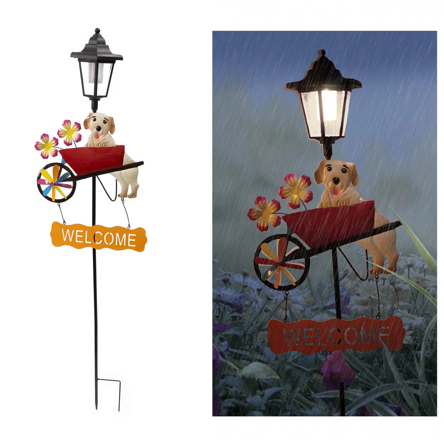 - Watering Can and Dog Welcome Sign Solar Garden Stake: Add a touch of whimsy to your outdoor haven with these charming garden stakes, featuring a Watering Can and Dog Welcome Sign.