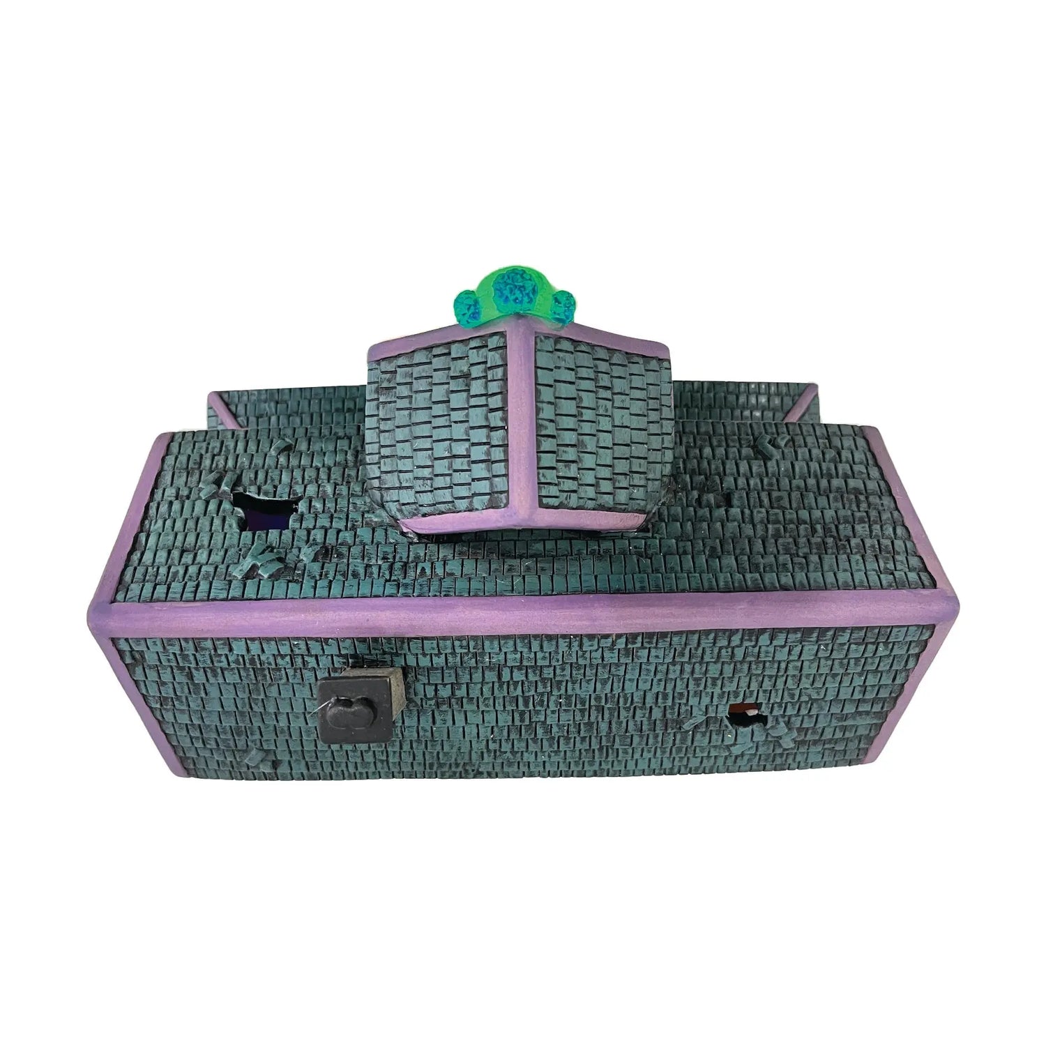 Elevate your Halloween Village with the whimsically eerie Clown House by FG Square Villages. This porcelain masterpiece, measuring 9.76" x 6.18" x 8.86", is a carnival of frights, designed to bring suspenseful fun to your Halloween celebrations. The Clown House is a delightful combination of chilling thrills and amusing laughs.
