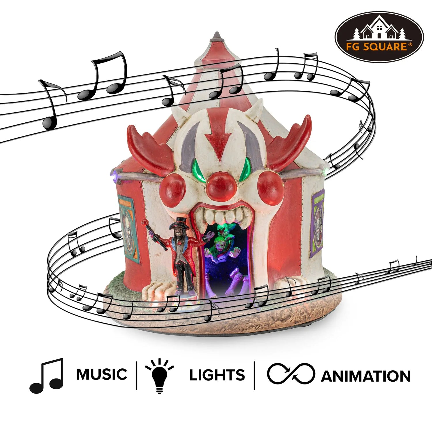 Step right up to the CarnEvil Tent Halloween Village, where the carnival comes to life in the most sinister of ways. This spooky porcelain tent features a menacing ringmaster with his mischievous grin, inviting spectators to enter and discover the chilling secrets within. Standing at 8.23 inches tall and measuring 7.4 inches in width and 7.52 inches in depth, this eerie masterpiece is sure to captivate and terrify all who dare to approach.