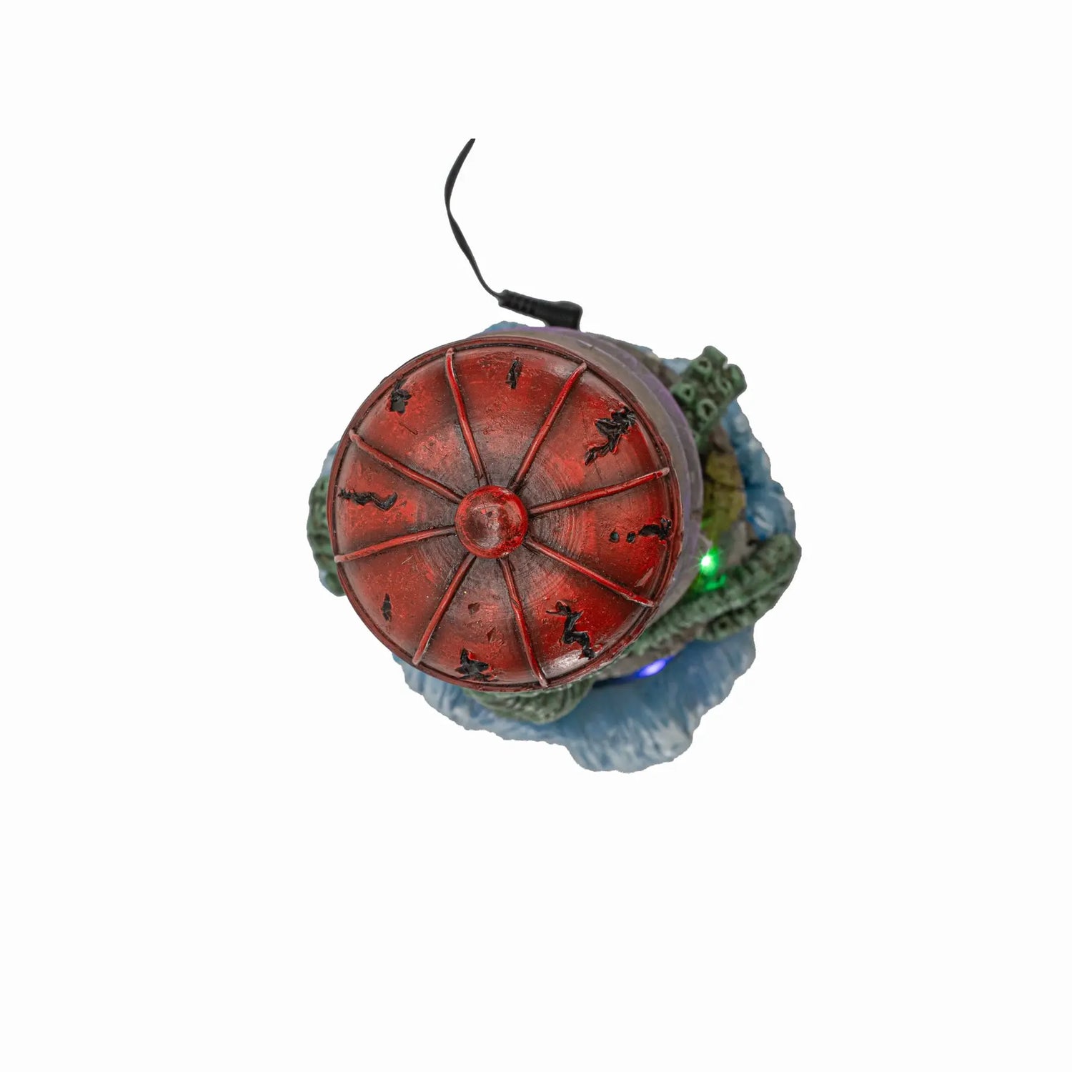 Experience the spine-chilling spectacle of Lighthouse Attack Halloween Village, where an animated lighthouse casts an eerie glow as it comes under assault by a monstrous sea creature. This polyresin LED scene captures the dramatic moment as the sea monster wraps its tentacles around the lighthouse, threatening to destroy it. Standing at an impressive 11.81 inches tall and measuring 5.91 inches in width and 5.39 inches in depth, this collector's collectible is a must-have for enthusiasts of the macabre and nautical.