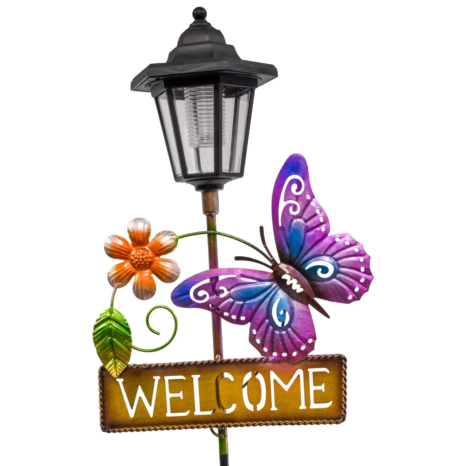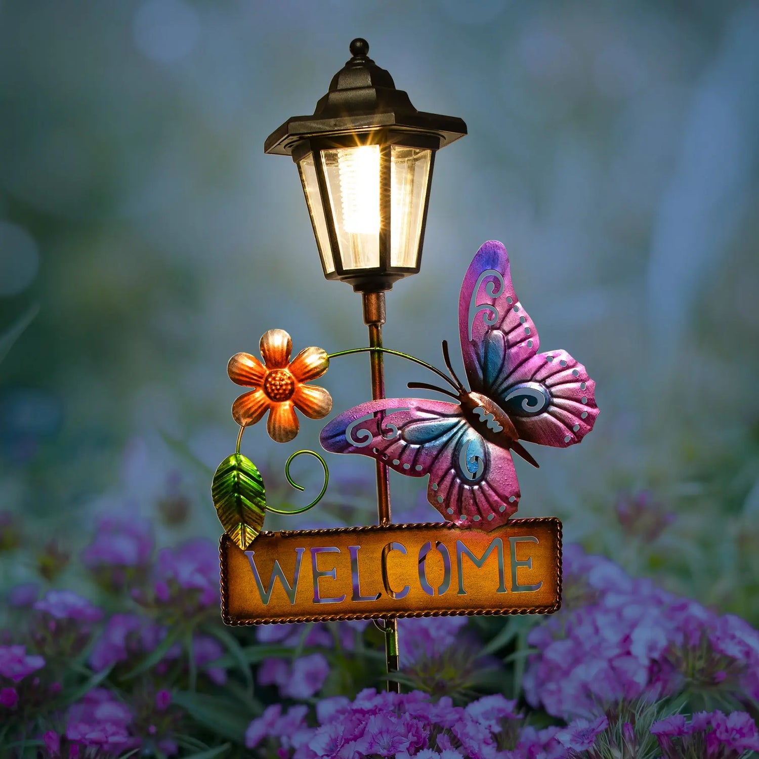 - Whimsical Welcome: Butterfly Welcome Sign Solar Garden Stake with enchanting illuminated greeting.