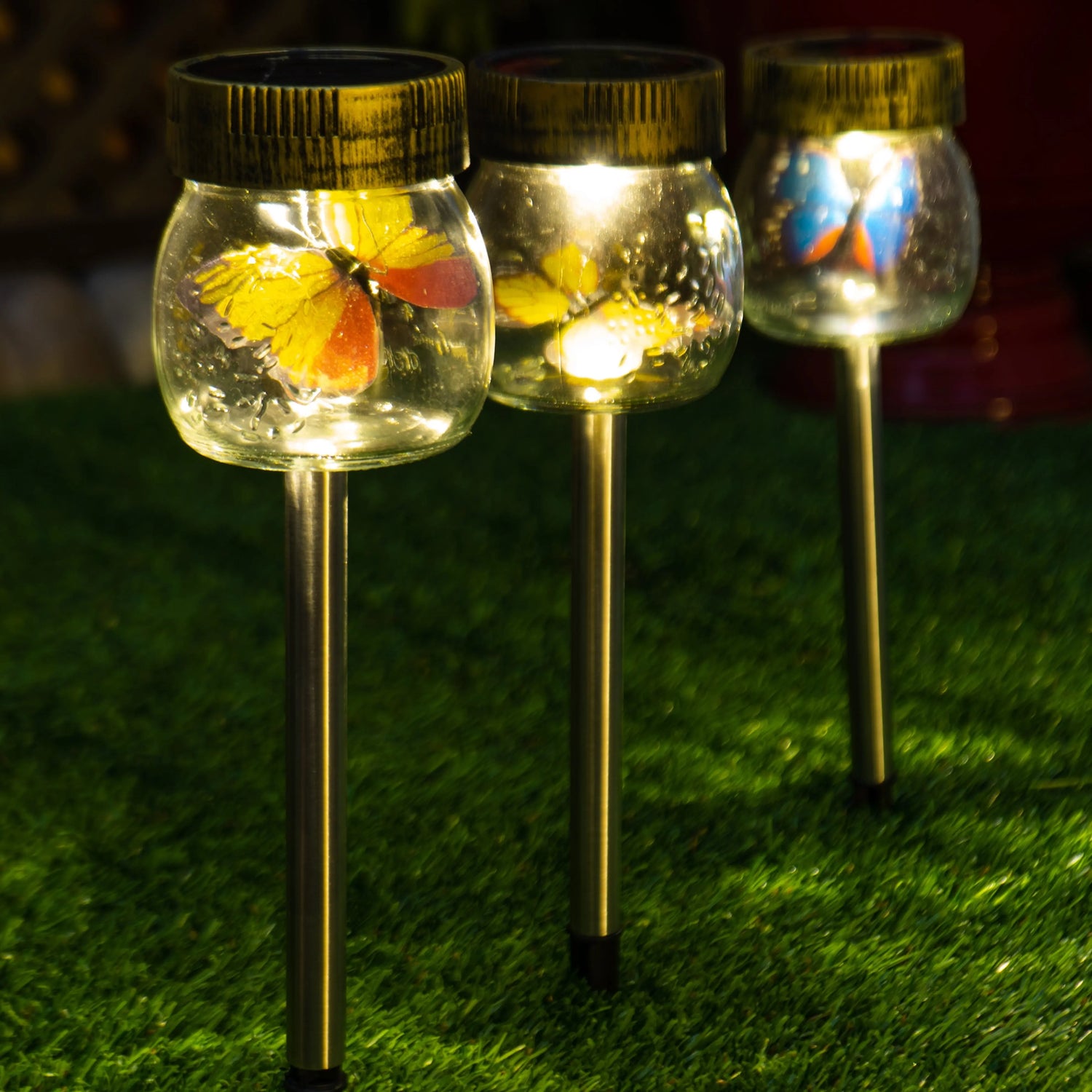 Butterfly Jar Solar Pathway Lights Set the Night Aglow (Set of 3)