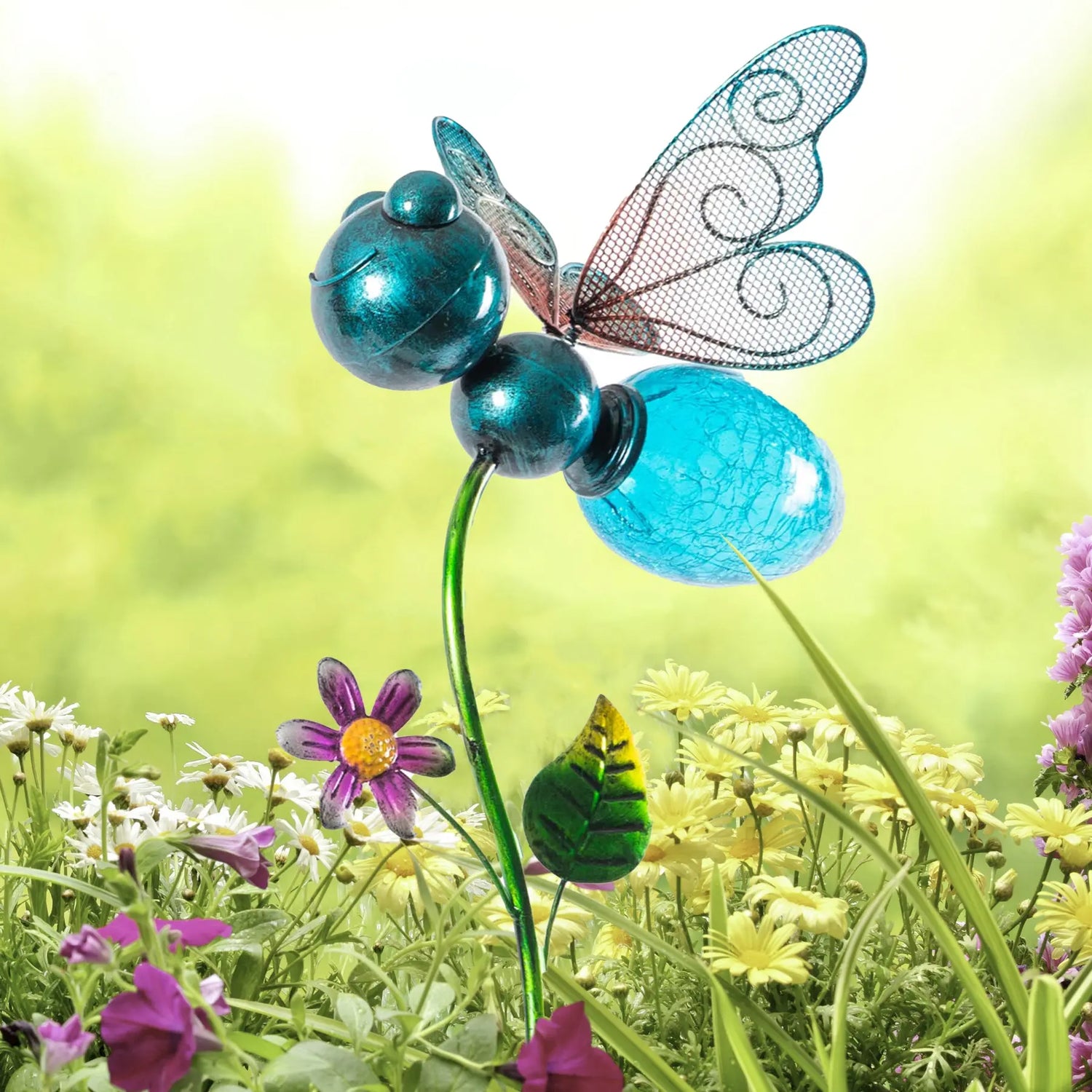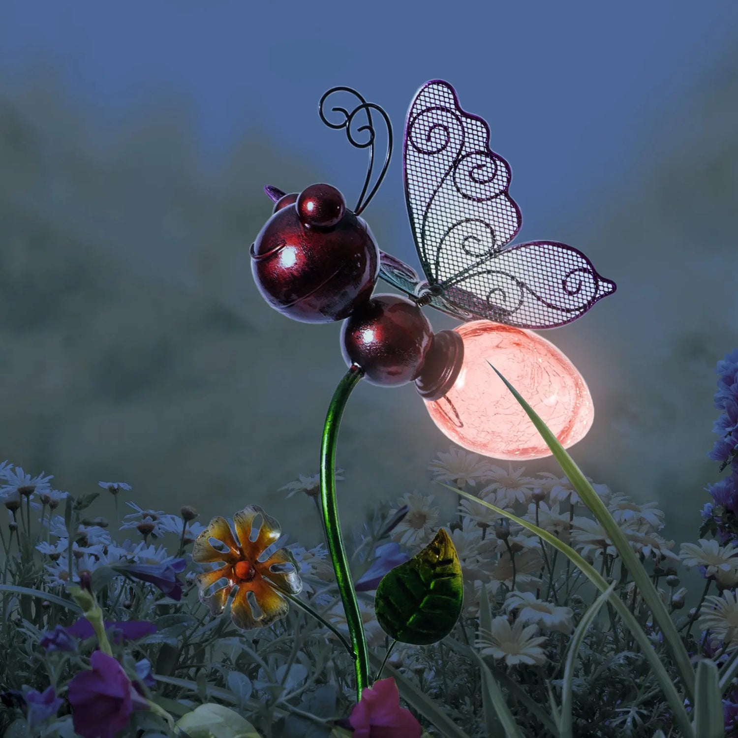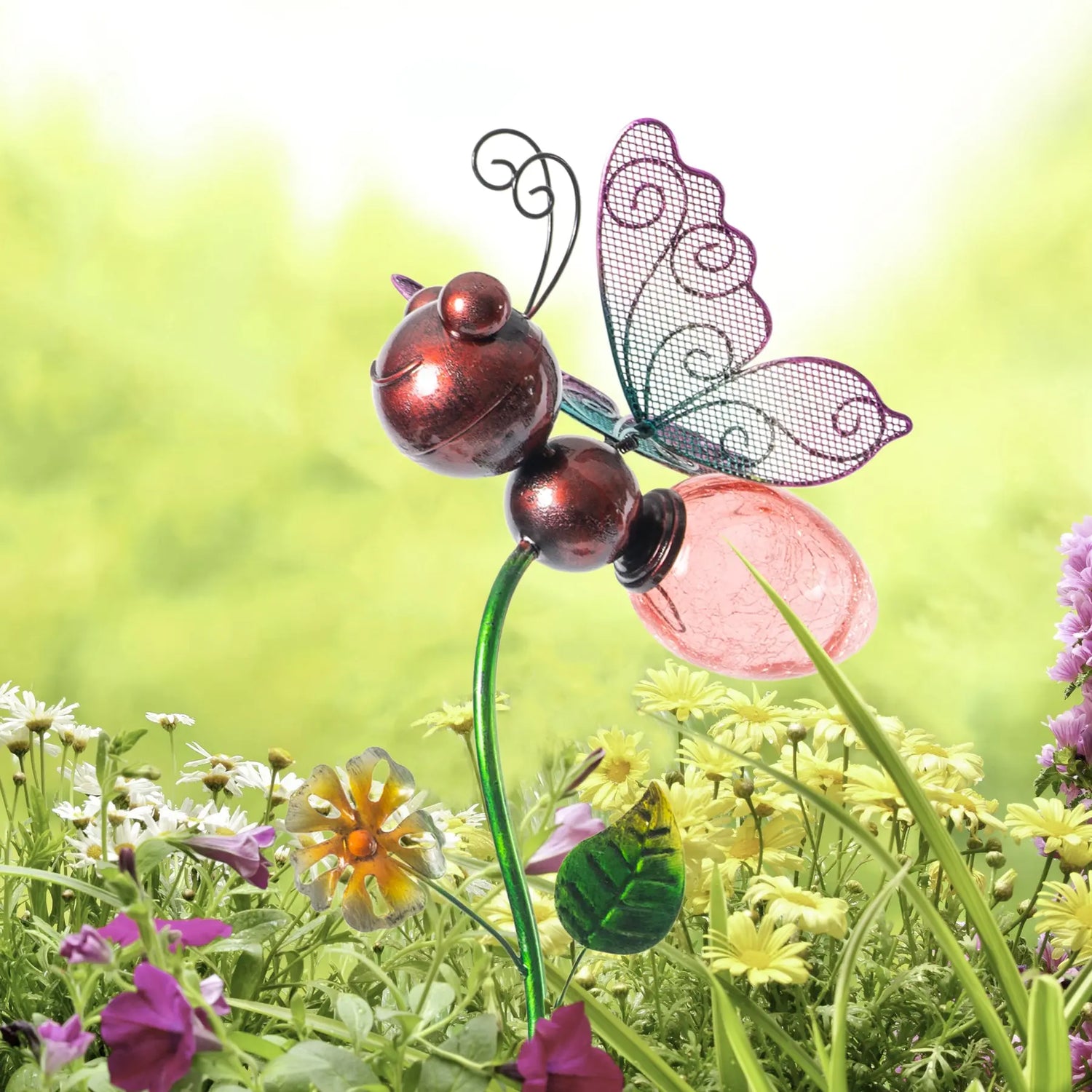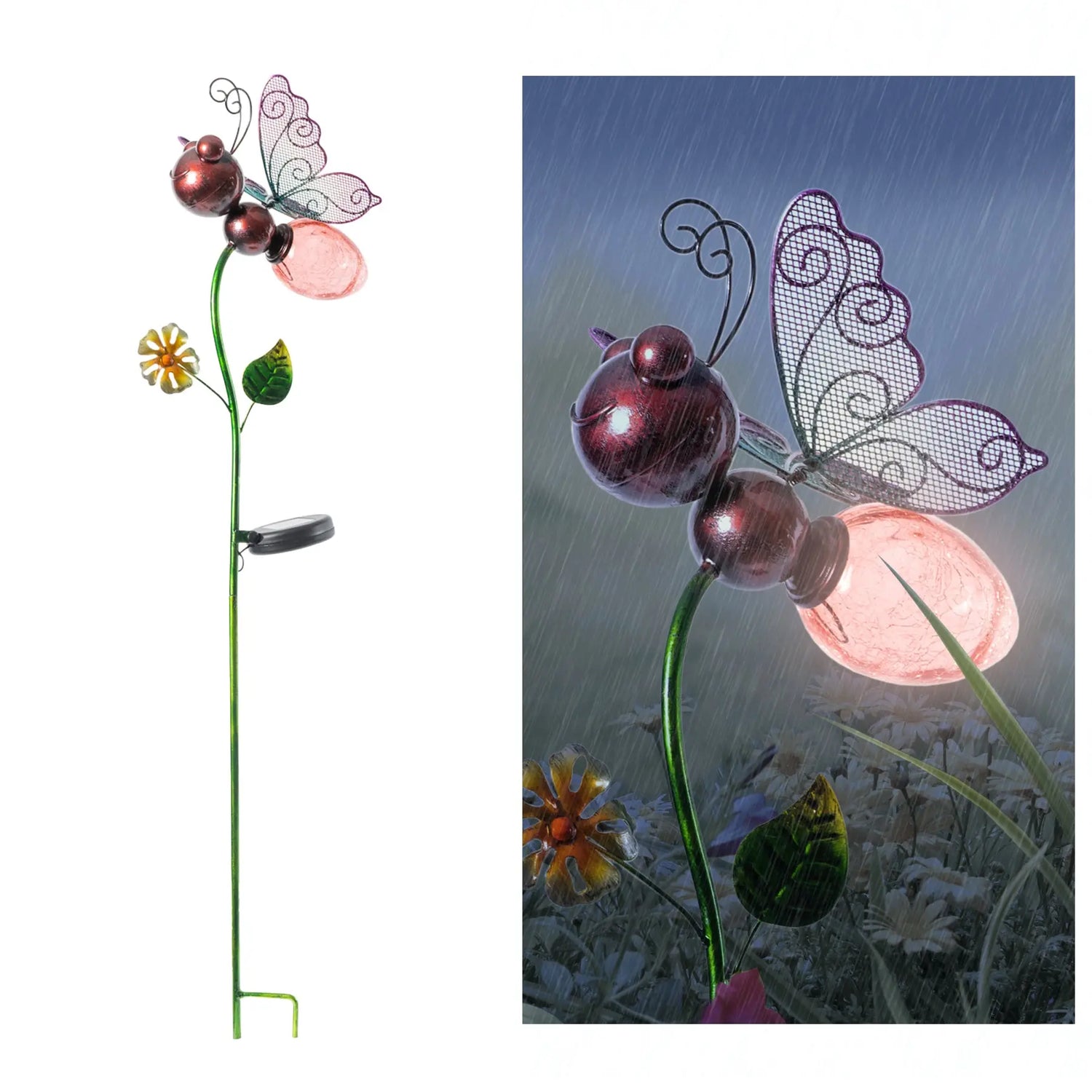 - Elegant Design: Solar Butterfly Garden Stake with colored glass and painted finish.