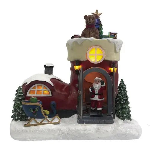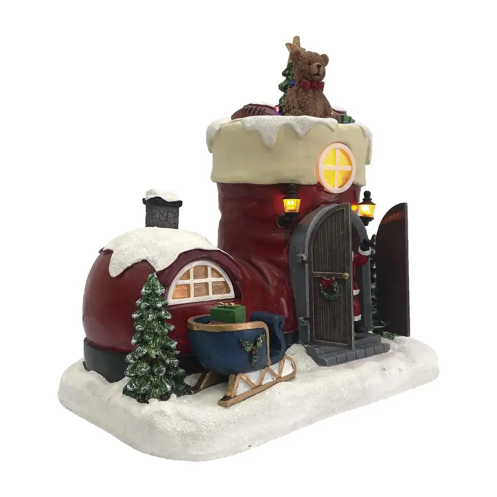 Santa's Christmas spirit is on display with a neat home design in the Santa's boot accessory. Each hand-painted piece is ready to be displayed alongside your other Christmas decor. This piece is a great gift for friends, family, and village collectors.