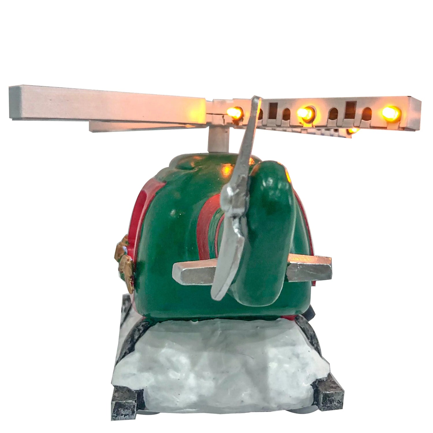 - PRE-LIT LED & ANIMATED: Illuminate & brighten your house with an Animated Santa in Helicopter village piece featuring warm and inviting LED lights. Features a rotating helicopter propeller. Perfect addition to your holiday train set or Christmas village.