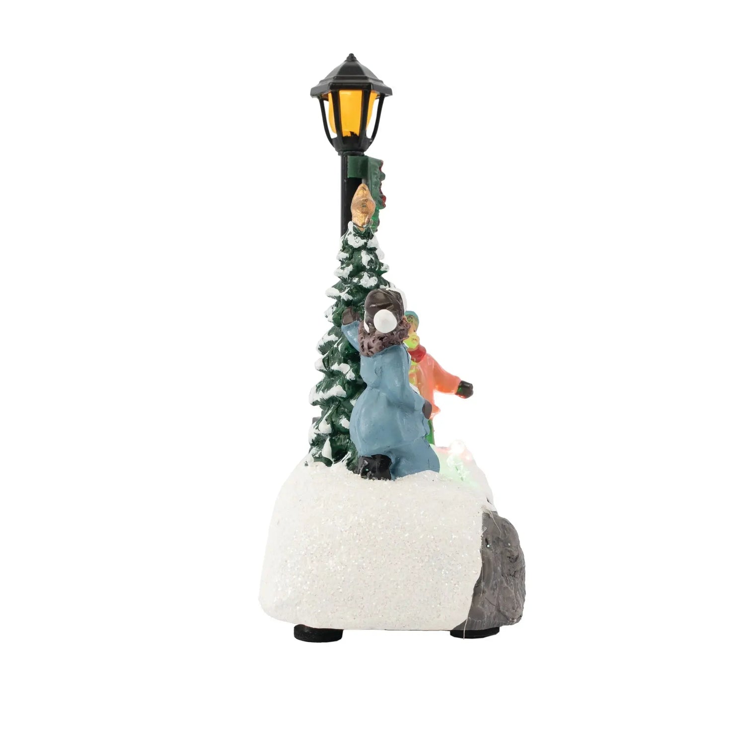 The FG Light Up Tree by Light Post is a charming addition to any Christmas village scene. This accessory features two people putting lights on a Christmas tree outside, and the tree actually lights up! It's a beautiful and festive piece that will bring some extra cheer to your holiday display.